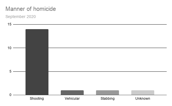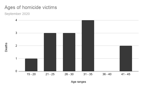 Kay was the youngest person who died from a shooting in September. The average age for the victims who died from homicides during the month was 33.