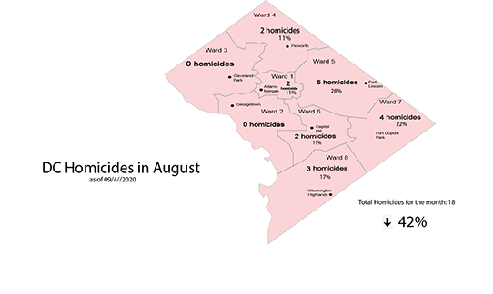 Ward 8, an area that is notoriously known to harbor the city’s largest homicide count, only accounted for three deaths in August.
