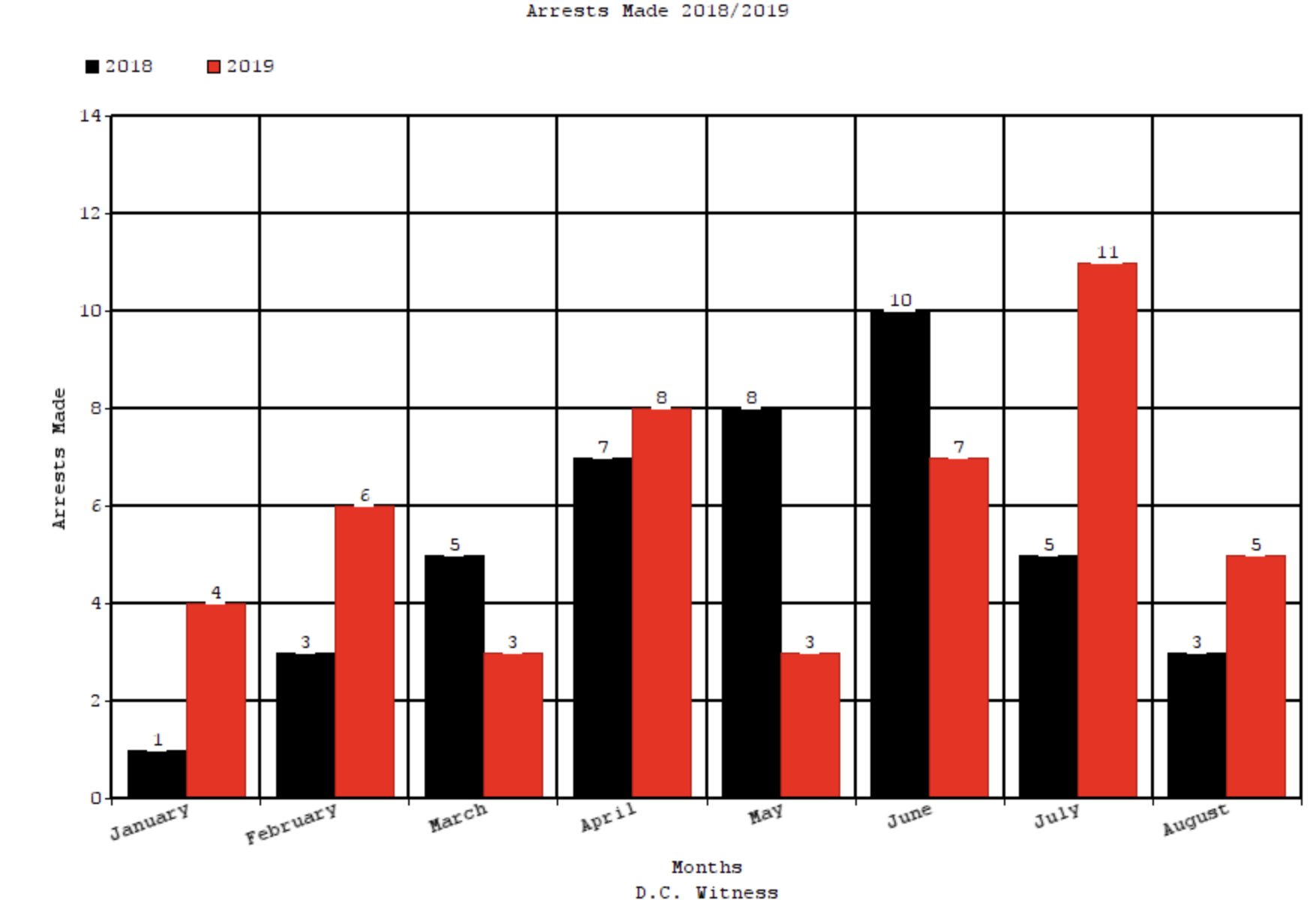 Out of the 60 suspects arrested in 2019, two defendants have been dismissed, four have pleaded guilty, three are awaiting sentencing and two have been sentenced. Nineteen are pending a grand jury, 24 are pending a preliminary hearing and nine are in court proceedings.