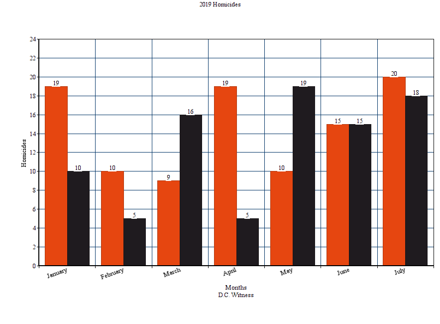 According to D.C. Witness data, there have been 113 deaths in the District of Columbia as of Aug. 22, a 13 percent increase from the 97 homicides in 2018 during the same time period.