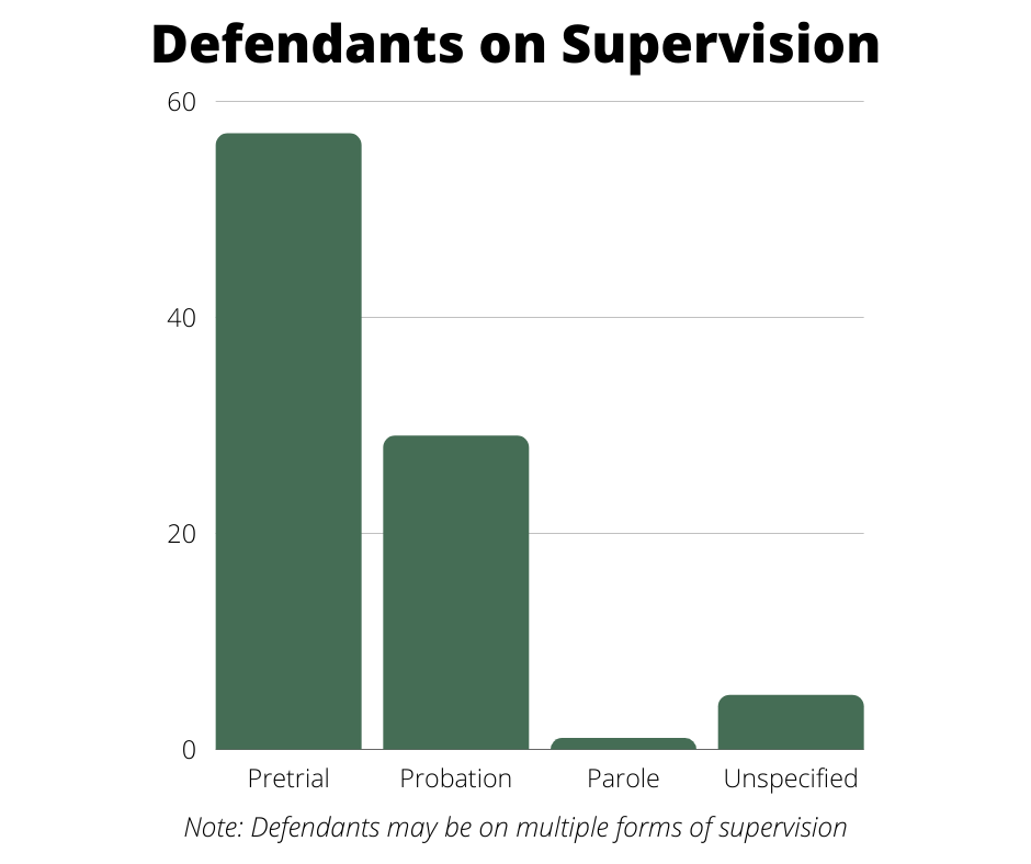 Additionally, seven of the held defendants were either on pretrial release or probation when they allegedly committed new offenses.