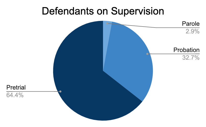 Only three percent of the defendants were on parole, while the majority, 64 percent, were on pretrial release.