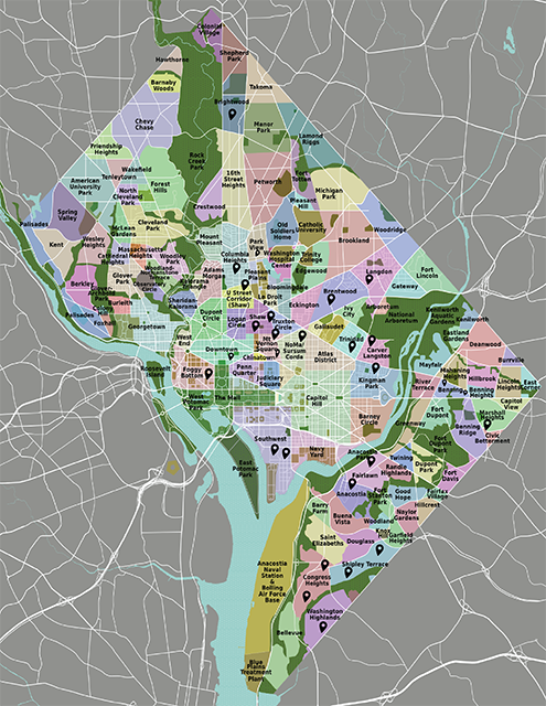 According to D.C. Witness data, the neighborhoods with two more homicides in 2019 included Fort Davis, 3; Bellevue, 3; Carver Langston, 2; LeDriot Park, 2; Greenway, 2; Washington Highlands, 2; and Northeast Boundary.