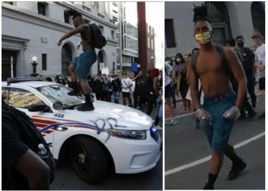 On May 31, a suspect allegedly damaged a marked MPD vehicle at the 1500 block of H Street, NW. The crime was photographed with the suspect in it.
