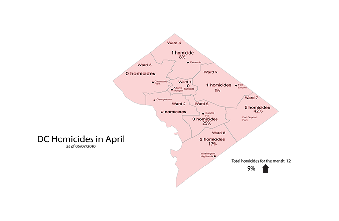 Editor’s note: A previous article incorrectly stated that there were no homicides in Ward 8 in April. The article now reflects the two homicides that occurred in Ward 8 during the month.