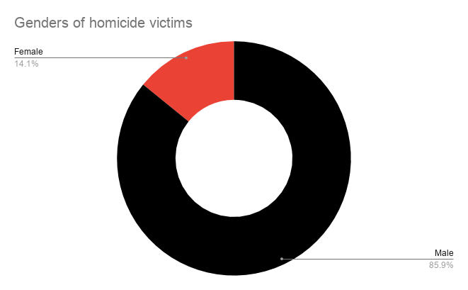 Five of 2020’s homicides were domestic. Four of the victims in these homicides were female. Data shows that even though women were victims in 14 percent of the total homicides that took place in 2020, their deaths accounted for 80 percent of the total domestic homicides in the city.
